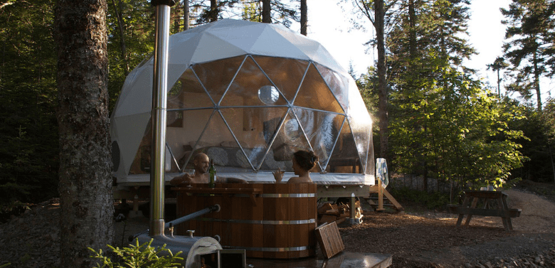 In a remote forest setting by Kingston Creek, this 185-acre property features a woodsy lodge, secluded log cabins and ultramodern "glamping" domes - 59.4 km from Saint John.