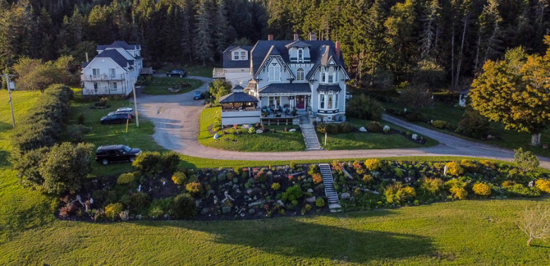 Built by David & Rachel Vaughan in 1857 following their honeymoon in the French Riviera, the ‘Vaughan Villa’, or ‘The Castle’ (as it is known locally), the Inn was modelled after the villas seen on the honeymooners’ trip. It is the most elaborate and eclectic house in the Village of St. Martins and retains to this day many of the architectural aspects and fine craftsmanship of its origin. Prior to its restoration as an Inn, the house was converted to an apartment building and the expansive grounds featured tennis courts. Today, the grounds offer a natural spring pond and flowering gardens with many comfortable spots for guests to relax and enjoy the view of the Bay of Fundy.