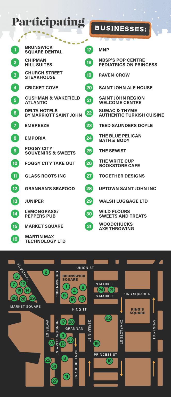A magical winding tour of gingerbread displays at businesses throughout uptown Saint John!